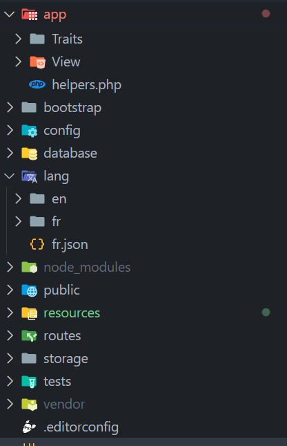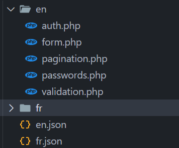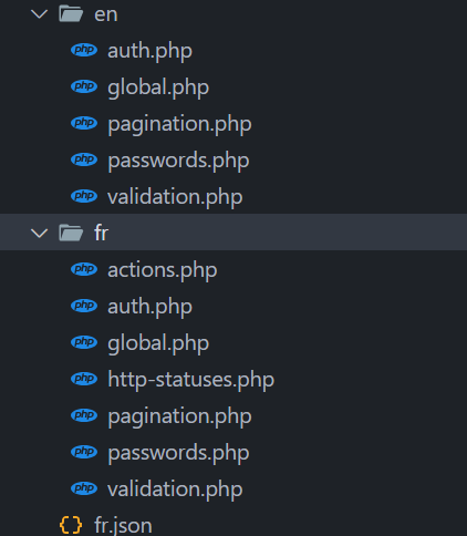 et les traductions se trouveront dans les dossiers de langue (fr/xxx.php, en/xxx.php), et tu pourra traduire en utilisant la syntaxe __('xxx.cle') ou trans('xxx.cle')